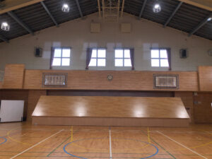 収納時は体育館が広く使用できることがメリットである一方で可動時間を