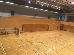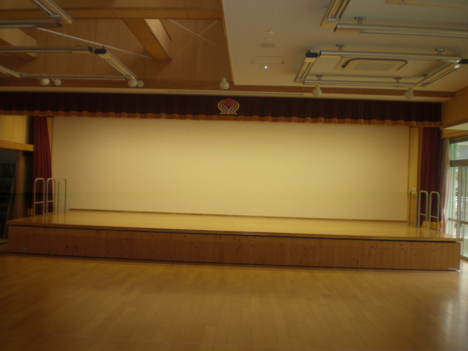 年に2回入校式の時などに可動舞台を作動させるとの事で、普段は使う事が無いので、収納する事で開いた空間を利用し、運動などをされているとの事です。