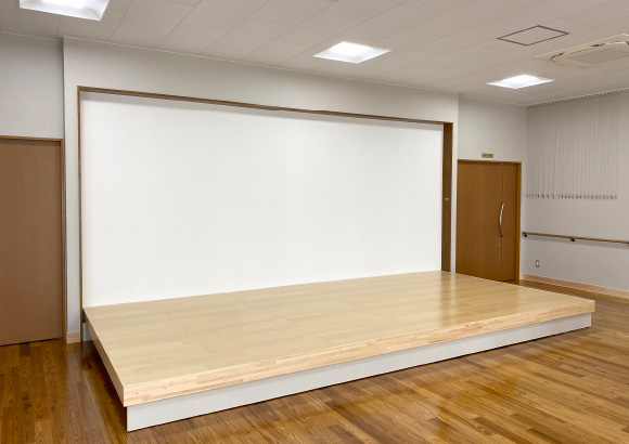 電動式壁面収納折畳みステージはステージの収納部を高くして、利用時のデッドスペースをなくしたステージです。スペースを広々と利用できます。