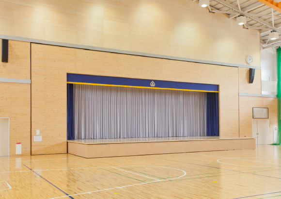 プロセニアム一体型電動式壁面収納ステージ