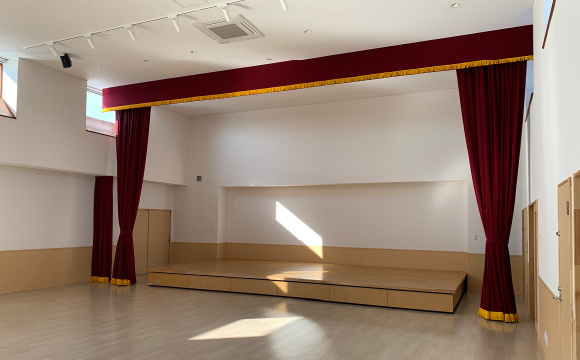 ステージ収納時は、遊戯室として園児の遊びや軽運動、お昼寝場所などで使用されます。